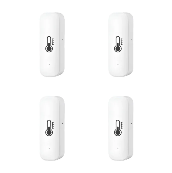Sensorerne er kompakte, batteridrevne (2× AAA) og kører på 2.4 GHz WiFi, så du kan placere dem fleksibelt uden kabler og stadig have fuldt overblik i appen.