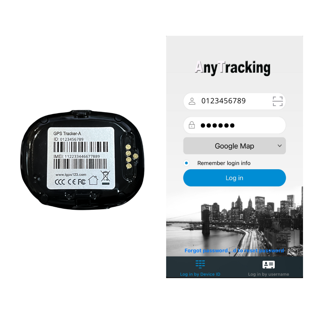 - Indtast de 10-cifrede ID-nummer, der findes på etikken bag på trackeren. Standard-adgangskoden som indtastes er 123456.