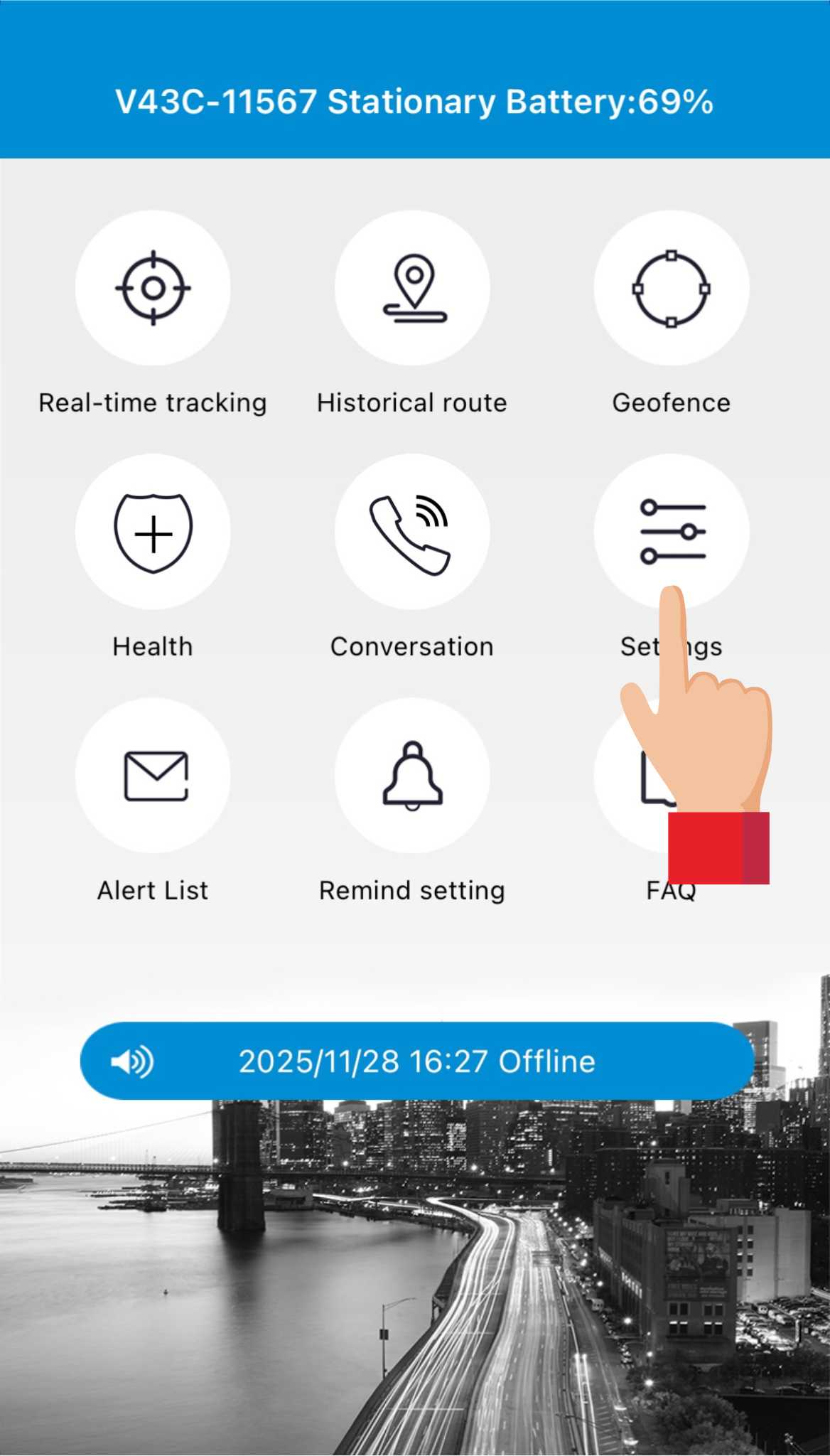 Når appen viser, at trackeren er online, kan man redigere i en lang række smarte funktioner, ved at klikke ind på Settings (indstillinger).