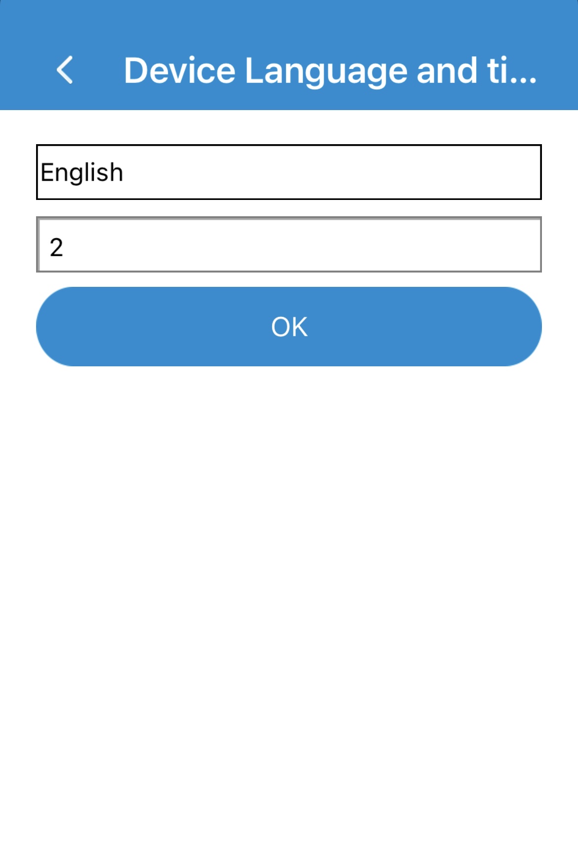 Ved at trykke på Device Language and time zone (enhedssprog og tidszone) indstilles sprog og tidszone for SMS-advarsler fra armbåndet.