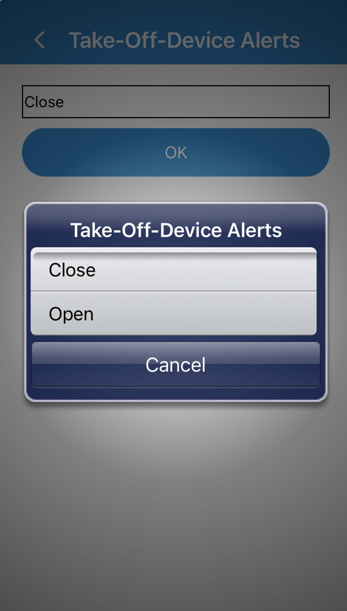 Ved at trykke på Take-Off-Device Alerts (aftagningsalarm) kan man vælge, om armbåndet skal alarmere, når armbåndet tages af håndledet.