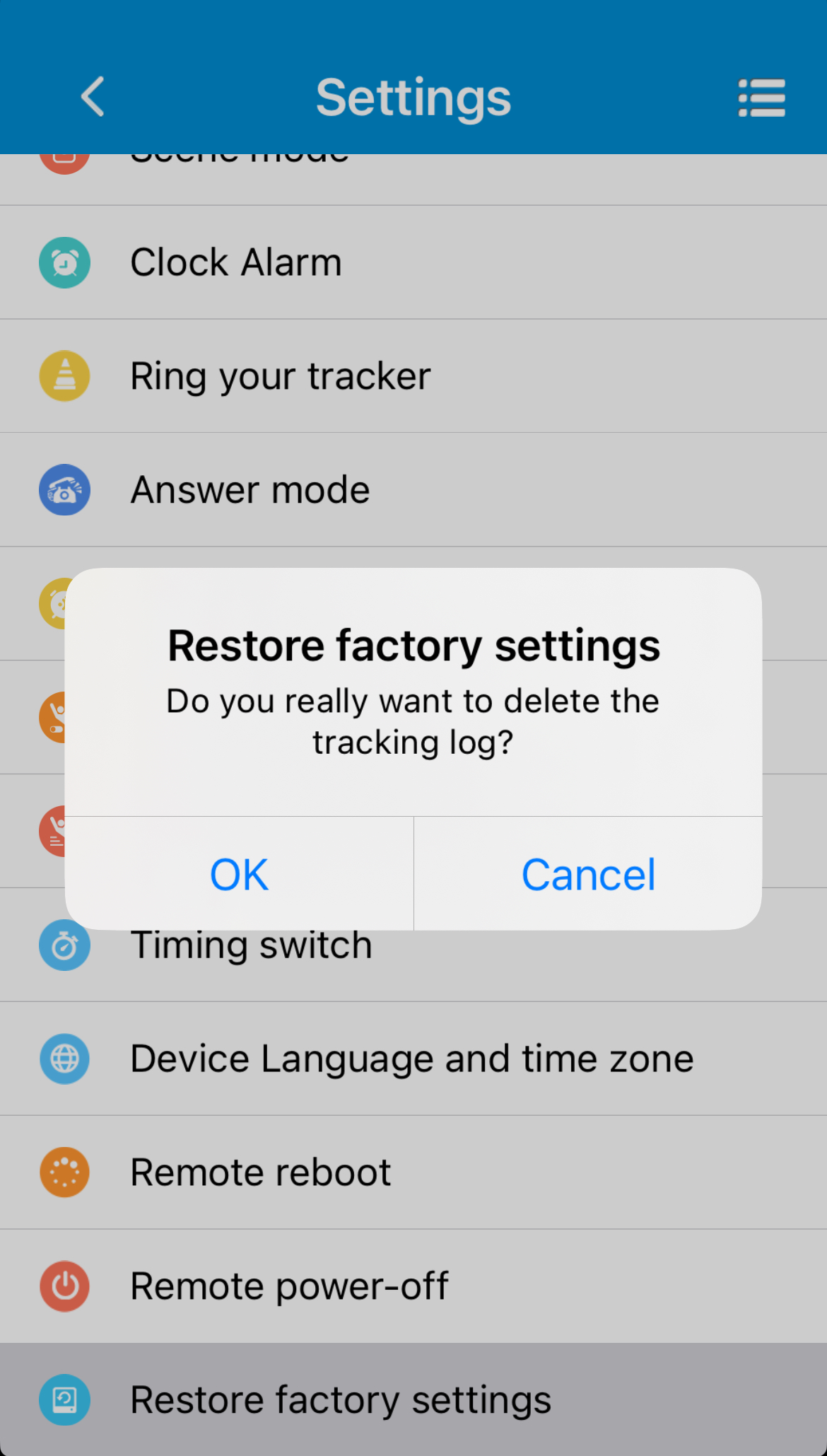 Ved at trykke på Ring your tracker (find enheden med lyd) og klikke på OK, kan armbåndet udsende en ringetone, så pårørende hurtigt kan finde armbåndet eller brugeren.