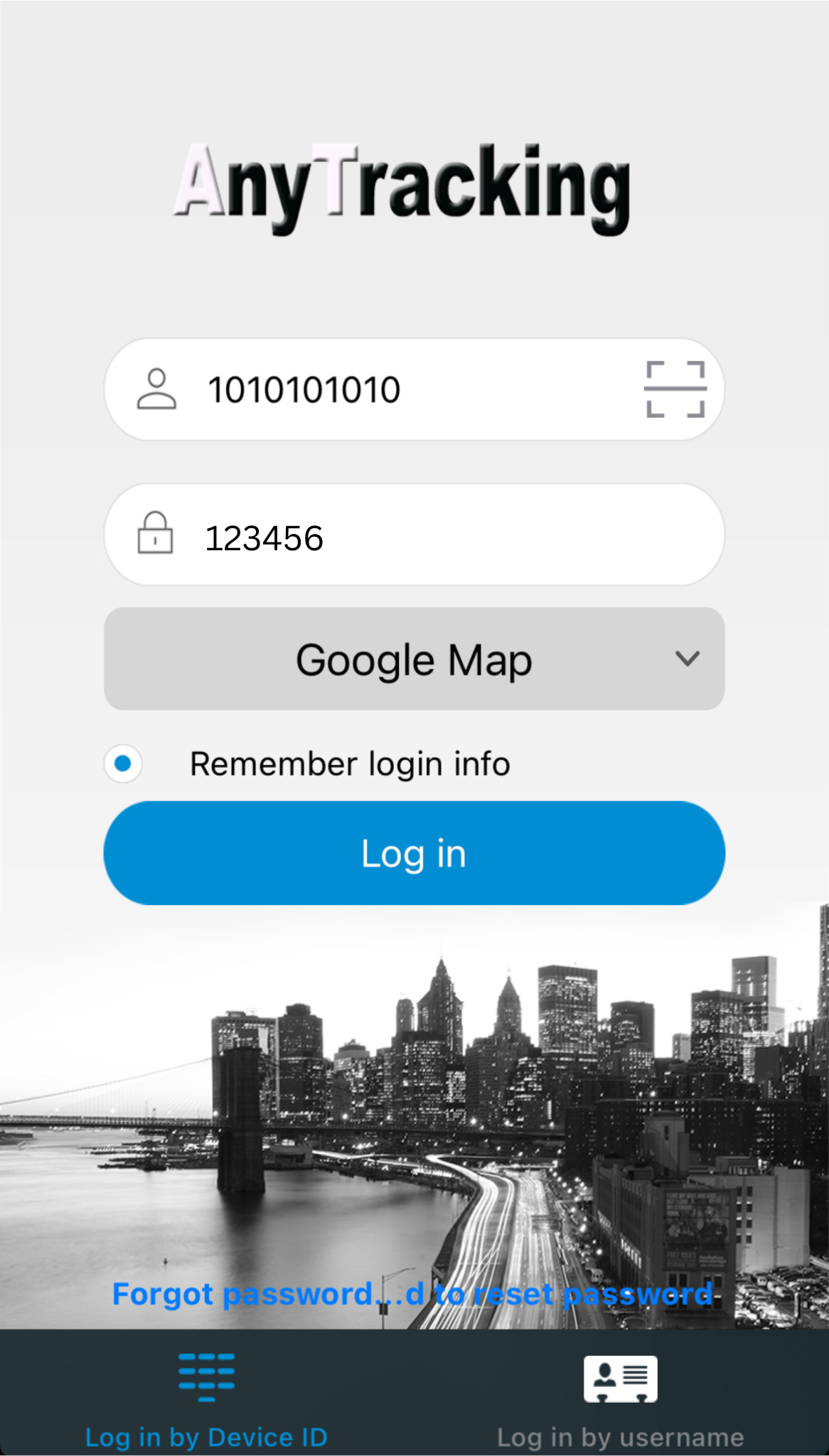 OBS: Når man logger ind i appen første gang og tilgår “Real time tracking”, er det vigtigt at give tilladelse til, at appen må bruge lokationen på ens smartphone. Giver man ved en fejl ikke tilladelse til dette, kan det ændres ved at finde AnyTracking inde i telefonens indstillinger og tillade lokationsdeling.
