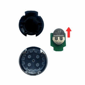 3. Indsæt det nye knapbatteri → saml fjernbetjeningen igen og klik bagsiden fast på → test om fjernbetjeningen lyser og virker.