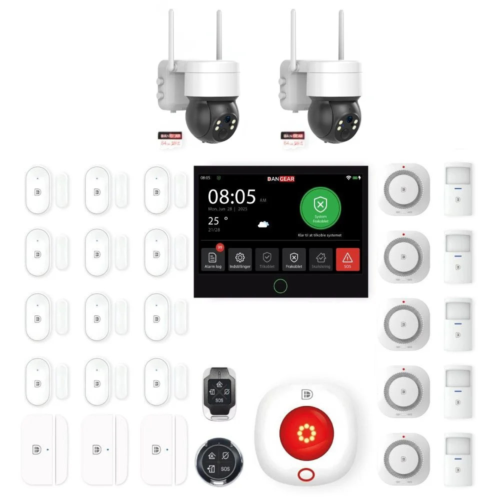 Alle vores alarmsystempakker skal ses som et udgangspunkt, som du selv kan bygge videre på. Hvis der mangler noget i pakken, kan du tilføje det ønskede tilbehør til kurven eller vælge en større pakke.
