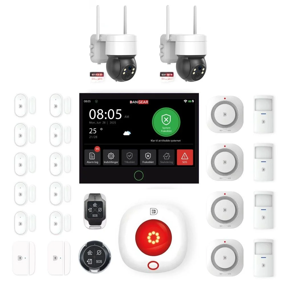 Alle vores alarmsystempakker skal ses som et udgangspunkt, som du selv kan bygge videre på. Hvis der mangler noget i pakken, kan du tilføje det ønskede tilbehør til kurven eller vælge en større pakke.
