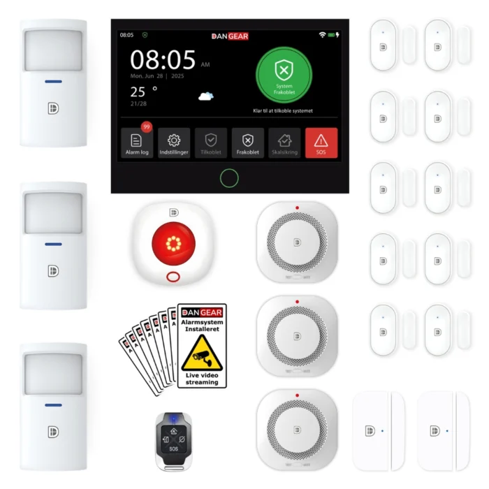 DanGear® touchskærm alarmsystemer med WiFi & 4G kan sende SMS’er og foretage opkald ved alarm. Det er derfor en fordel at vælge en teleudbyderpakke, der mest inkluderer tale og SMS, og så lidt data som muligt, da det ikke vil blive anvendt.